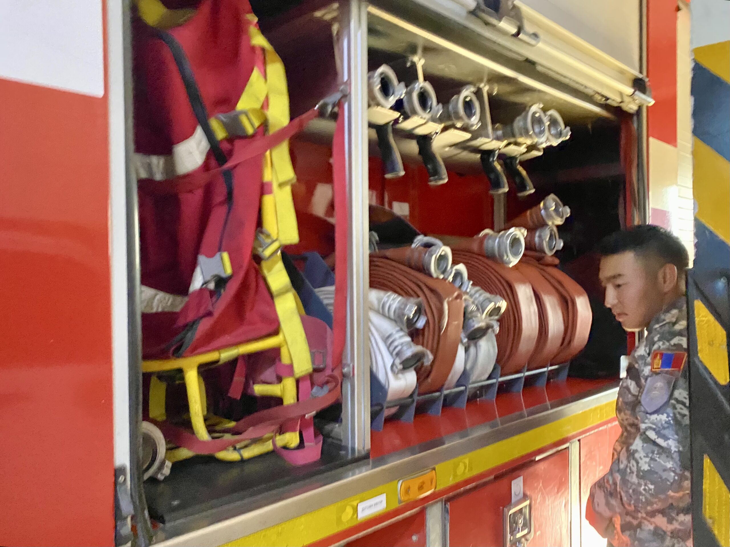 Өглөөний 08:30 минут. Гал түймэр унтраах аврах 10 дугаар анги. Үүдээр яваад ороход ангийн жижүүр угтан авч амрыг эрэн мэндчилэв. Төд удалгүй ангийн эхний хонх дуугарч, үүрэг гүйцэтгэх албан хаагчид хувийн бэлтгэл, бэлэн байдлаа ханган аврах ангийн арын талбайд жагсахаар түргэвчилнэ. “Салаа зэрэгц, номхон, зэрэгц дунд. (хөл тавин алхах чимээ…) Эрхэм дэд хурандаад, нэг хоёрдугаар салаа ээлж халалцахад бэлэн, салааны захирагч ахлах дэслэгч Билгүүн” Гал сөнөөгчдийн өдөр ийнхүү эхлэх бөгөөд ангийн захирагч үүрэг тавина. Үүний дараагаар өдөр тутмын дасгал сургуулилтдаа гарч албан хаагчид 20 гаруй минут гүйдэг. Гүйлтийн дараачаар тэд гар дээр суниаж, гал унтраах шланк, хоолойнуудаа холбон яг л бодит дуудлага дээр очсон мэт тархан, гал унтраахаар зэхнэ. Тэднийг салааны захирагч С.Билгүүн хариуцан командлах ба тэр бээр хэлэхдээ “Дасгал сургуулилтын зорилго нь гал дээр очоод алдаа гаргахгүй, шинээр ажилд орсон ажилчдаа дадлагажуулах, өөрийн бэлэн байдал амь насаа хамгаалахын тулд шүү дээ” гэж хариулсан юм. Гал сөнөөгчид тухайн гал дээр очоод ямар ч схемээр тархаж болдог. Энгийн ойлгомжтой үгээр тайлбарлавал шланкаа холбоод хэдэн метрт, яаж тарж ажиллах талаар бэлддэг гэсэн үг. Дан ганц шаланк барин тарж гүйхгүйгээр, гурван давхар дасгал сургуулилтад зориулан барьсан модон байшин руу шатаар авирдаг. Аврагчдад гурван төрлийн шат байх ба хамгийн хүнд нь гурван давхар барилга хүртэл сунадаг 45 кг жинтэй. Шинэхэн гал сөнөөгчид уг шатыг буруу зөөх, сунгах, бүр буруу баривал шийтгэл болгон үүрдэг. Өвлийн хүйтэнд ч ажрахгүй шатаа өргөх дэд ахлагчийн царайнаас олон олон гал сөнөөгчдийн тэсвэр хатуужил ажиглагдана. Аврагчид нь галын голомт дээр ажиллахдаа хүн нэг бүрийн тусгай зориулалтын хувцас, амьсгалын бие даасан төхөөрөмж хэрэглэдэг. Хувцас нь дөрвөн кг жинтэй, гал усанд тэсвэртэй бол амьсгалын төхөөрөмж нь зургаан кг. Өөр дээрээ 10 кг ачаа нэмж үүрэн хөдлөхөд төвөгтэй ч тэд энэ хувцсандаа түүртэлгүй сурамгай гэгч нь ажилладаг. Гал сөнөөгчдийн нэг өдөр 2022 онд Онцгой байдлын ерөнхий газрын даргын тогтоосон ангийн цагийн хуваарийн дагуу өрнөдөг. Гэвч галын дуудлага ирсэн даруйд тэд хийж байсан бүх зүйлээ орхиж, нэг минутын дотор бүрэн хувцаслан, машиндаа суугаад, ангийн байрлалаас гарсан байх ёстой. Бид ярилцаж суух зуур ч дуудлага гарвал яг ижил зарчим мөрдөгдөнө. Яагаад гэвэл тэнд хүний амь нас, эд хөрөнгө яригдаж буй. Галын дуудлага гарахад ангиас хоёр машин гарч явдаг. Нэгдүгээр тэрэг нь дөрвөн тонн устай, дөрвөн төрлийн хөөстэй. Араас нь туслах ус зөөвөрлөх найман тонн устай машин гарна. Үүнээс гадна шатны автомашин буюу стандарт барилгын долоон давхарт хүрч ажиллах чадамжтай машин бий. Хэрвээ тухайн гал нь том хэмжээнийх бол ангийн байрлалаас нэмэлтээр ус зөөвөрлөх 10 тонн устай машин ирнэ. Өмнө дурдсан дөрвөн төрлийн хөөсийг усанд унтардаггүй бензин, тос, буцаж сэргээх шаардлагатай түүхийн үнэт олдвор, музей, хэмхлэхгүйгээр унтраах зорилготой бүсэд галыг агааргүй болгож унтраахад ашигладаг. Нэг тасагт таван гал сөнөөгч бий. Нэгдүгээр тасаг нь хоёр машинтай гарах бөгөөд тэд нь эхэнд дурдсан хоёр машин. Дуудлага руу явах зуур салааны захирагч тухайн галд үнэлгээ өгч, хэрхэн тарж ажиллахыг зааварчилдаг. Тэдэнд хором, минут, секунд бүр үнэ цэнтэй. Гэлээ ч дуудлагад яарч буй аврагчдад бэрхшээл мунддагүй. Иргэдийн зүгээс гал сөнөөгчд